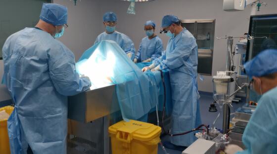 2020年,银丰生命科学研究院的临床团队及专家再次升级灌流技术,开创右股动静脉MAQUET专用ECMO经皮穿刺置管、快速建立体外循环术。手术中,通过股动脉、股静脉和颈部双侧颈外静脉穿刺引流,并连接体外循环设备,同时根据灌流压力控制引流流量,此项灌流技术,再一次提高了灌流效率。